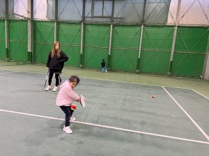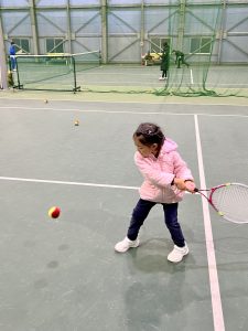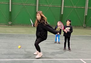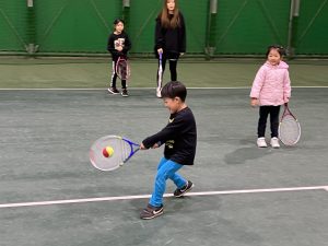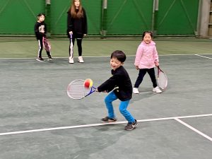 2時間のレッスンのうち1時間は大人、1時間はお子様と初心者のママさんでレッドボールで行っています。