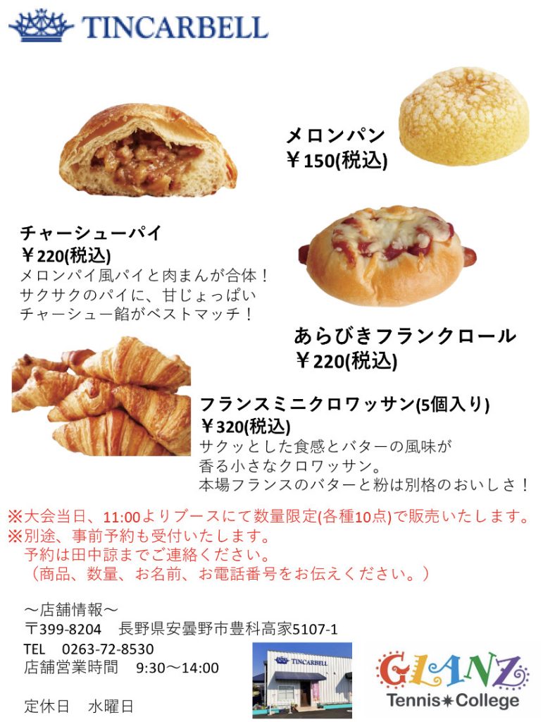 スタッフブログ TINCARBELL様出店内容 GLANZ杯ではTINCARBELL様が様々な美味しいパンを出店して下さいます! Tweet Share Hatena Pocket RSS feedly Pin it 古田カップ 第3位✨ 前の記事 5月4日GLANZ交流会ありがとうございました。 次の記事